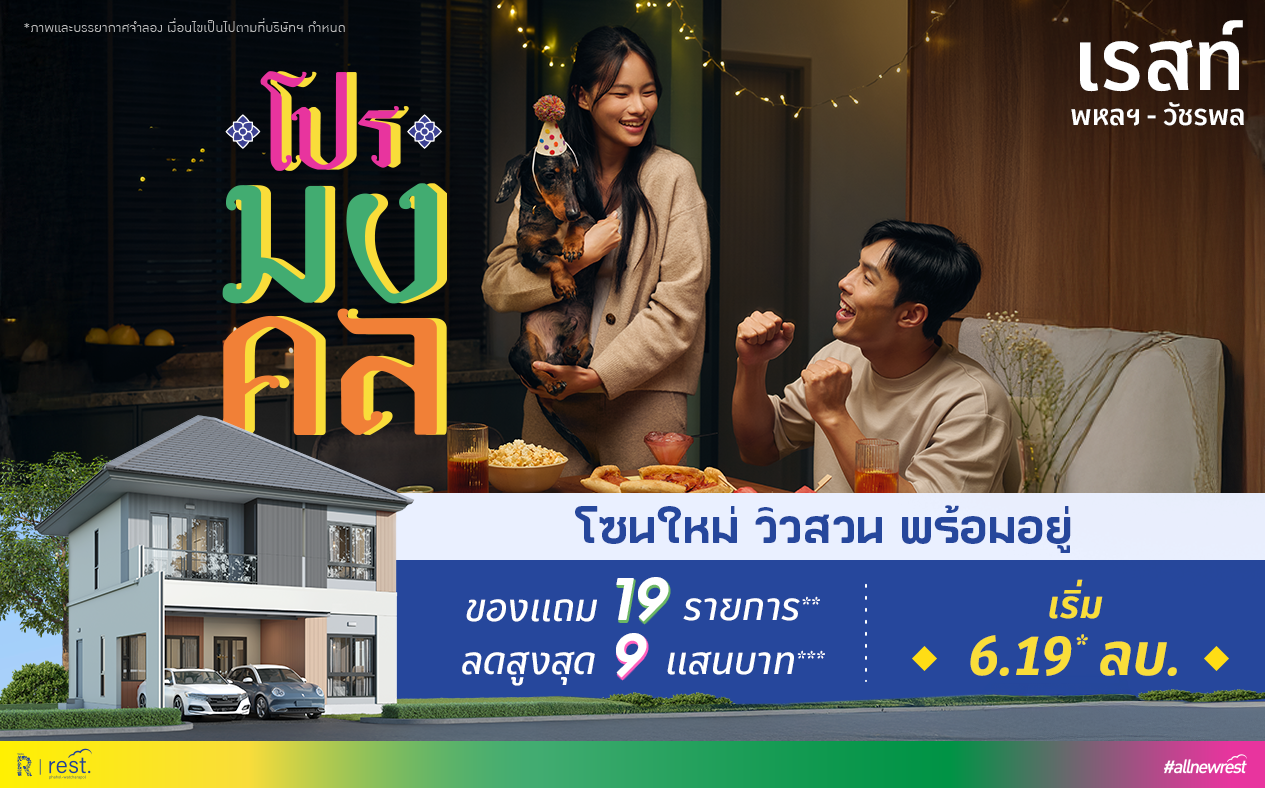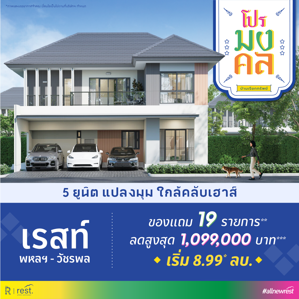 - โปรโมชั่น สําหรับผู้จองซื้อบ้านโครงการเรสท์ พหลฯ-วัชรพล ตั้งแต่วันที่ 1 มกราคม 2569 – 31 มีนาคม 2569 และต้องรับโอนกรรมสิทธื์ภายใน 45 – 60 วันหลังการจองซื้อเท่านั้น