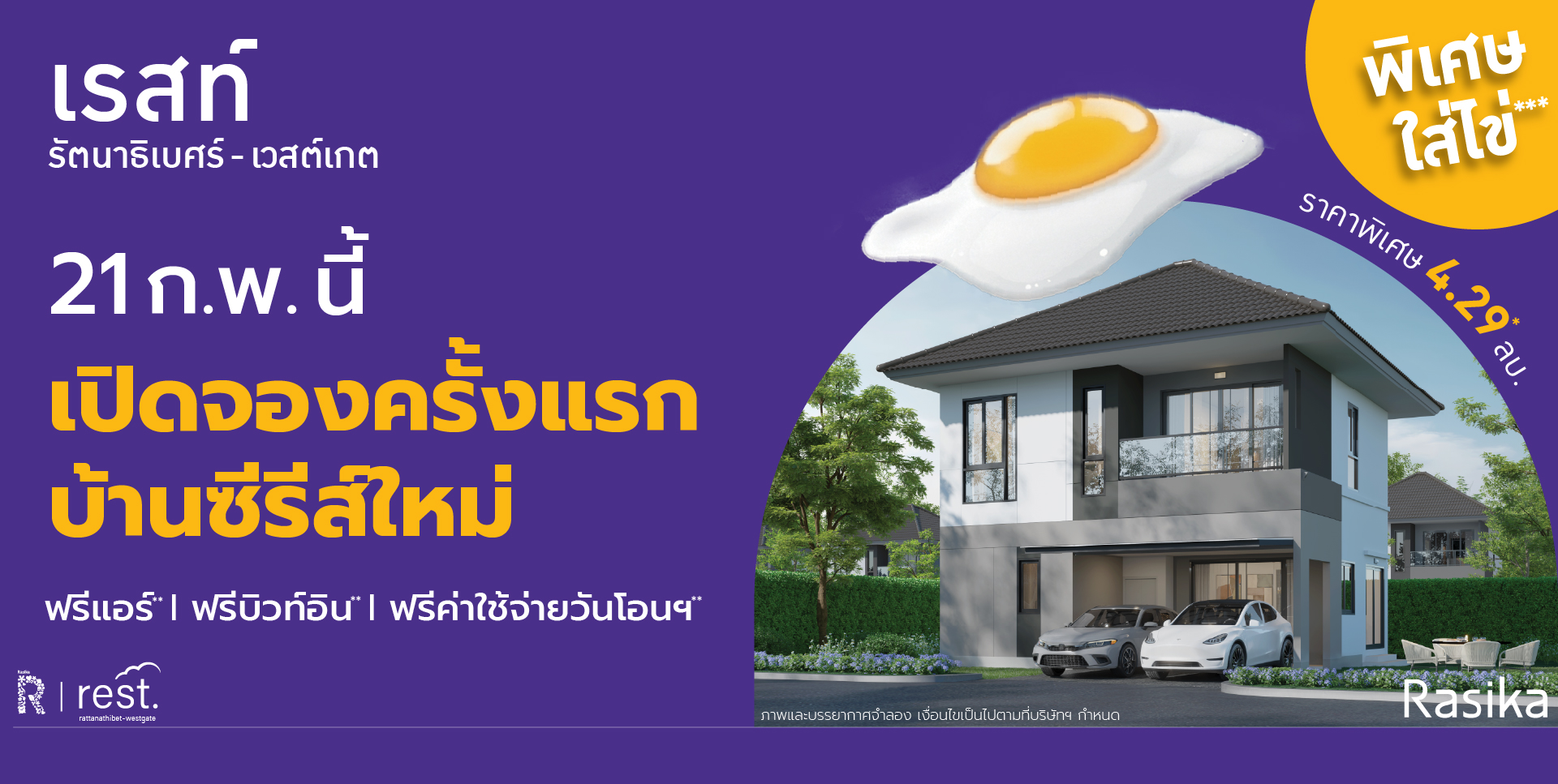 * ราคาและโปรโมชั่น เงื่อนไขเป็นไปตามที่บริษัทฯ กำหนด / ภาพบางภาพเป็นภาพจำลอง และบรรยากาศจำลอง อาจมีการเปลี่ยนแปลงตามความเหมาะสม